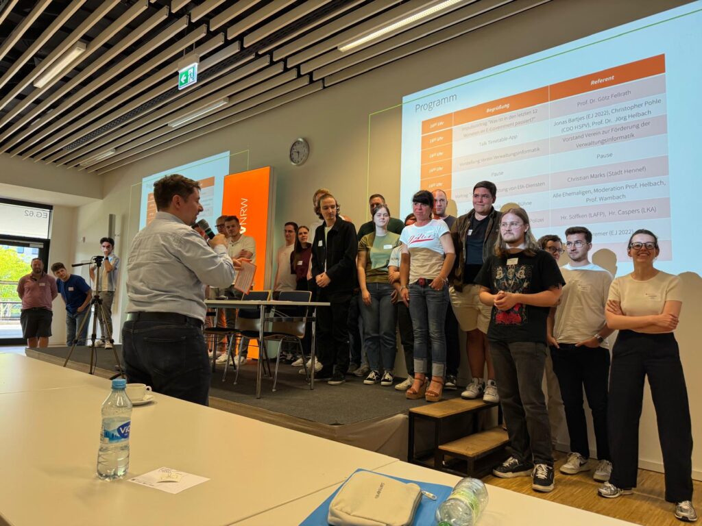 Der gemeinnützige Verein zur Förderung der Verwaltungsinformatik hat das Ziel, Erziehung, Volks- und Berufsbildung umfassend zu fördern, wobei ein besonderer Schwerpunkt auf der Weiterentwicklung und Vermittlung von Wissen in der Verwaltungsinformatik liegt. Dazu unterstützen wir Studierende und ihre Projekte – insbesondere an der HSPV NRW – und tragen dazu bei, deren Ergebnisse langfristig zu verstetigen, während wir zugleich durch regelmäßige Veranstaltungen den fachlichen und persönlichen Austausch, die Vernetzung sowie den Wissenstransfer zwischen Studierenden, Lehrenden und Praxispartnern aktiv gestalten.