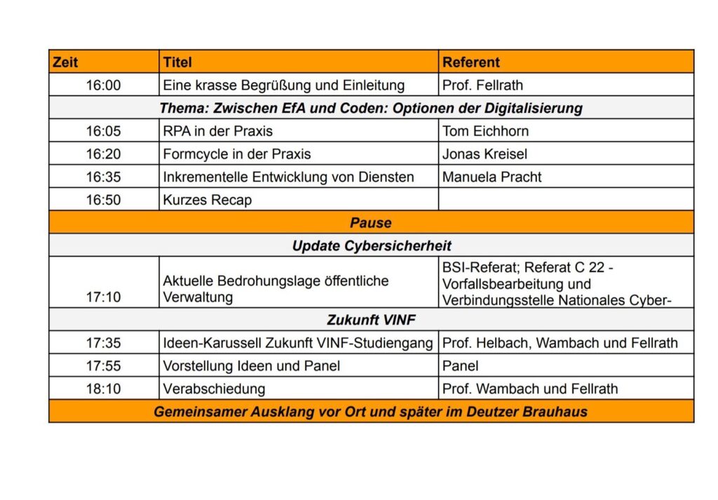 NETZWERKTREFFEN Verwaltungsinformatik AM Mo., 27.04.2026!
